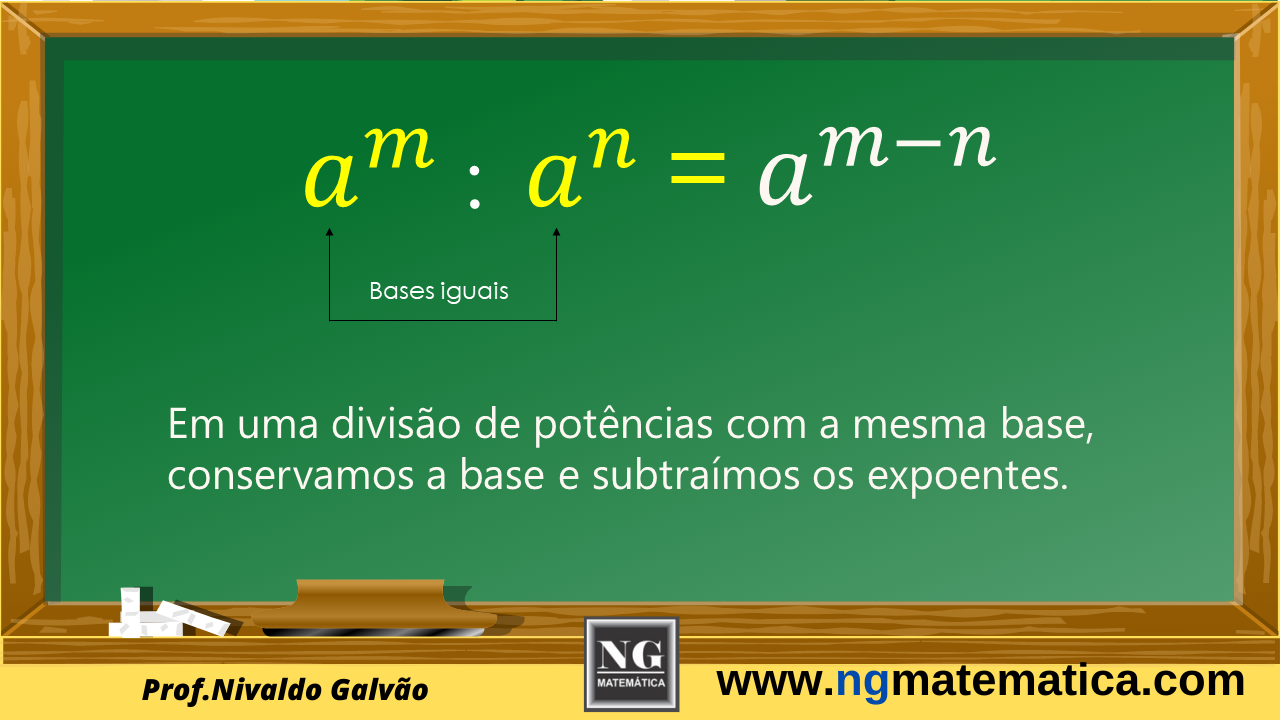 ► Divisão de Potências de base iguais