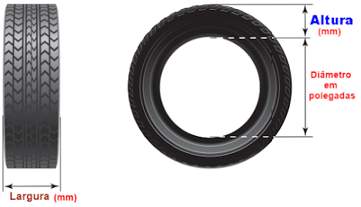 com a largura do pneu, sendo o valor indicado com a medida em milímetros. Essa